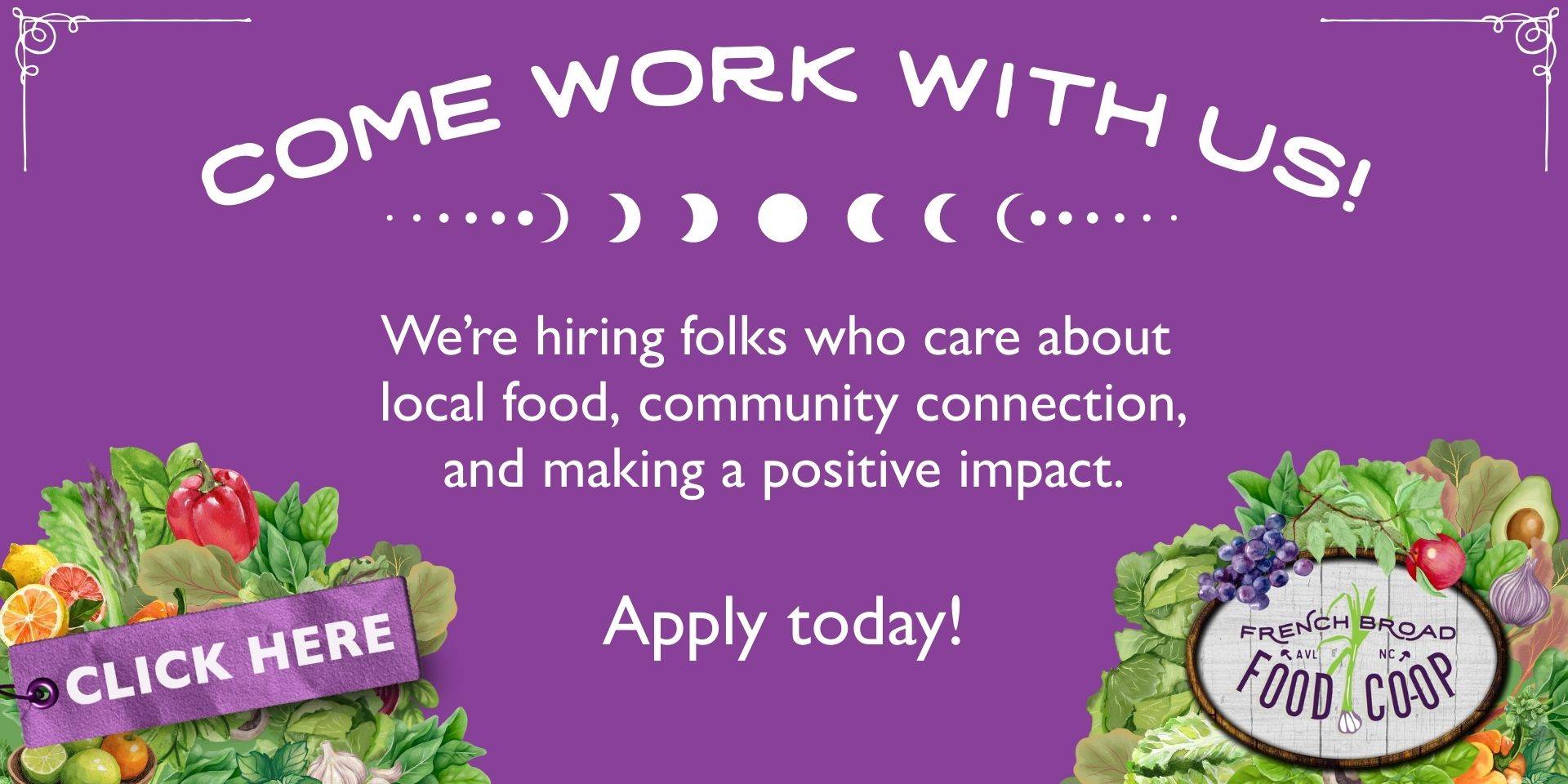The French Broad Food Co-op is a grocery store that focuses more on people than profit. We do that by supporting local farmers & producers and being community owned. Ownership means you get to have a voice in how the co-op functions, what kinds of products are carried, the policies that govern the business and who is elected to uphold those policies. This is a no-sellout scenario.
