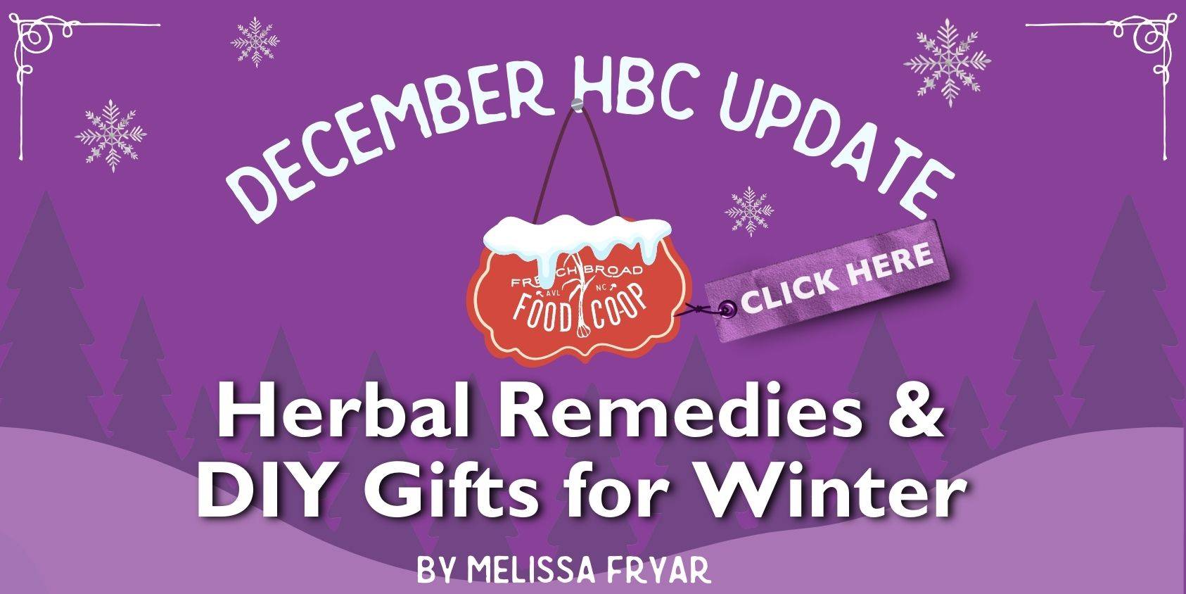 *Yum- so many wonderful food gifts are available at the coop. Grocery has decadent chocolate from French Broad Chocolate Lounge, and many other brands. They also have advent calendars, Runamok Maple Syrup and Cocktail Bitters, Boxed Teas, and a host of local offerings. Our produce department has the seasonal yum…pomegranates, all kinds of citrus, cranberries, and whole nuts.